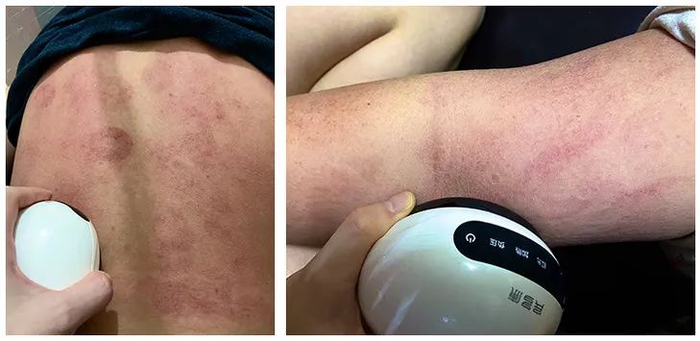 而且不同于刮痧板的武力硬刮,它更像“走罐”,边刮边吸,没那么痛,但既能刮通表层堵塞经脉,连深层积痧也能被吸出来,效果拔群。