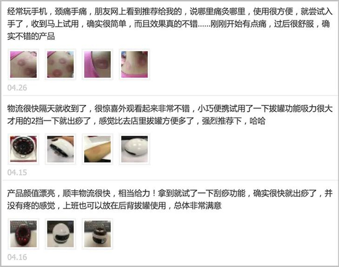 去看网上评价,也全是好评称赞:“一下就出痧了”、“比去店里拔罐方便”…