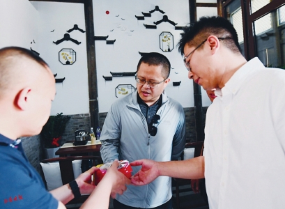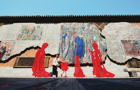 “119驿站”上的景致还会让你眼前一亮,它不仅仅是一条街道,更是融合山西老建筑、非物质文化遗产、艺术品收藏、文创设计、娱乐购物和休闲度假为一体,涵盖了吃住行、游购娱、商养学、闲情奇等元素。街巷上,以山西壁画为主题元素的文化墙就吸引了很多人的目光,忻州九原岗北朝壁画、永乐宫壁画等等,经典的壁画元素通过艺术家之手似原景再现,让人品味之余感慨山西历史文化的博大精深;几幅镂空造型的仕女图,更是游客们拍摄的最佳道具,仔细观察就会发现,这都是剪纸元素的线条雕塑,简洁之间充满美感;还有各种非遗展示,比如太谷当地特色的“二鬼摔跤”,一人分饰两角,彼此之间互不相让、进攻摔打的激烈场面,让围观人群不时发出喝彩之声……都说高手在民间,在四周摆摊的商贩中,也不乏给你来一次文化普及。山西晚报记者在街巷中的一家酒坊里,就被热情的店铺老板科普了白酒纯净度的小常识,酒文化的普及和推广,也由此深入人心。