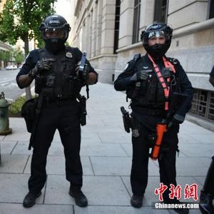 华盛顿街头全副武装的防暴警察。 中新社记者 陈孟统 摄