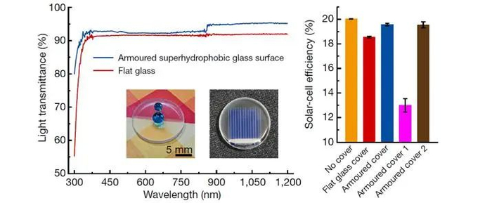 高透光率的玻璃铠甲化超疏水表面应用于自清洁太阳能电池板示意图。受访者供图