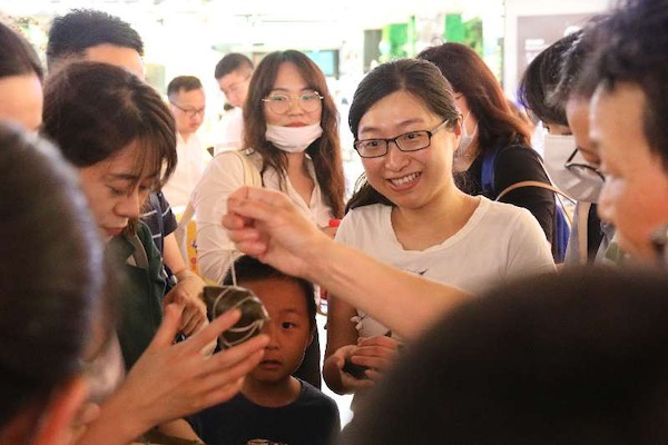 新民晚报讯(记者 张钰芸)五月初五端午节将至,粽子必不可少。日前,五芳斋和盒马联手举办端午非遗文化传承活动,浙江省非物质文化传承人胡建民师傅来到现场,亲手展示五芳斋粽子的制作技艺,并教授市民裹粽技巧,引来不少大小朋友跃跃欲试。