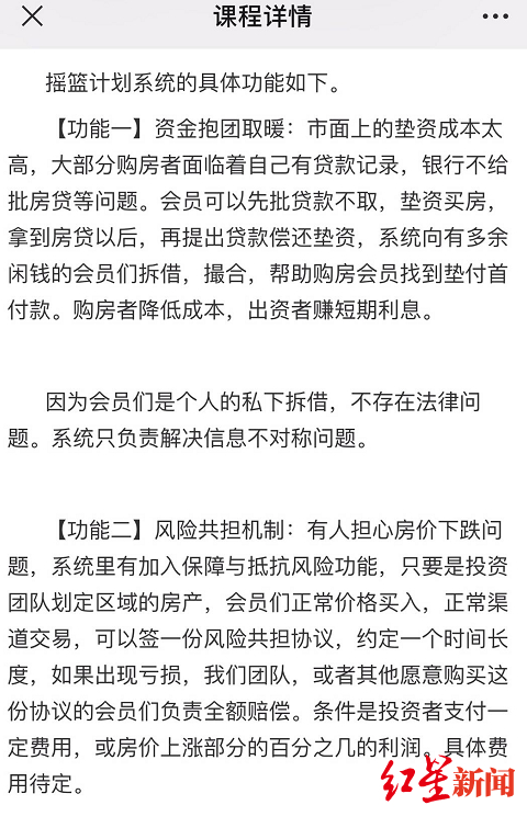 有媒体分析,所谓的“买房致富”大致分为三个步骤:第一步,忽悠房价暴涨、吸粉粉丝;第二步,收会员费,通过中介向购房会员放高利贷;第三步,通过霸王借据和官司诉讼等方式,迫使会员资金链断裂,最后会员所买的房产也被他们纳入囊中。
