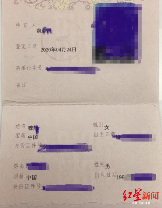 在群里会员的介绍下,魏静谈好以3万元与一位有购房资格的深圳籍男子结婚,“后来见面我得知,他是一个深圳房地产中介的男生。”4月魏静与该男子结婚了,并在一个月内离婚,成功获得了深圳购房资格。从魏静发来的结婚证上红星新闻记者看到,魏静出生于197X年,该男子出生于1988年。
