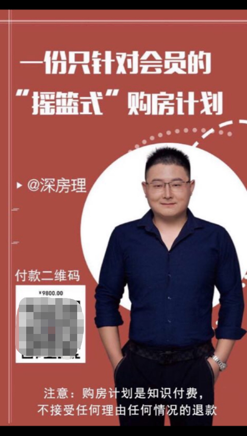 从那时起,魏静每天准时收看“深房理”的直播,看完觉得不过瘾,还去把更早之前的直播回放找出来,“每天吃饭也看,做事也看”。魏静完全沉迷在了“深房理”构筑的世界里。看完直播,她又按照直播中的指导,关注了“深房理”的微信公众号,里面关于“房产金融化”“房产股份化”的概念,似乎给魏静打开了“新世界”的大门。去年9月15日,魏静先后缴纳了2980元的会员费和9800元的“摇篮会员”费,正式加入了“深房理”的会员群。