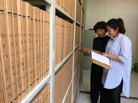 在审计署,档案管理员团队显得有点儿特别,署机关和特派办的档案管理员共21人,有19位女性,这里,女性占据了压倒性的优势。档案管理其实是一项需要体力的工作,上能登高取卷,下能躬身查档。档案员大多喜欢穿着平底鞋,因为走路多,查目录、调档案、归档审核、档案入库,每天要在办公室、档案借阅室、库房等房间来回多次。她们看似柔弱,实则力量惊人,能手提,能肩抗,干起活儿来毫不含糊。各单位每年要接收数千卷(件)的档案,每一卷都要经过档案员从目录的审核,到实体的把关,对耐心和细心都是很大的考验。档案工作是平凡又有些枯燥的,但档案管理员却对档案管理工作有着特殊的感情。在这个团队中,有一直坚持工作30余年,经验丰富的老档案员,也有年轻活泼的新档案员,他们都是审计工作默默无闻、坚定执着的支持者。