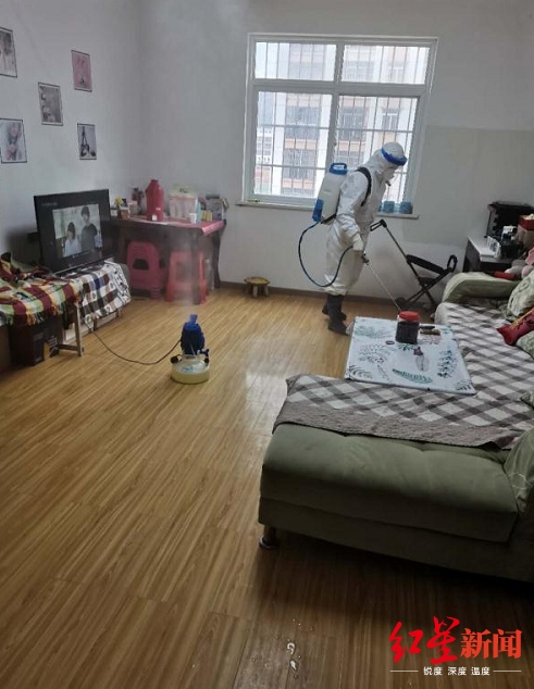 白莎每天要背着二三十斤的消毒水,去没装电梯的居民楼消毒