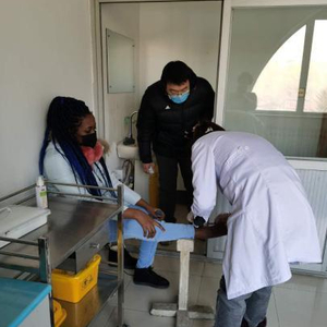 封校期间,谭丽在公共厨房做饭的时候不慎弄伤了右脚,导致无法独立行走。老师在走访寝室时发现了这一情况,第一时间联系校医并护送谭丽到校医院包扎。为了避免伤口恶化,校医要求每两天要进行一次清洗护理、消炎换药。自此,这个非洲女孩就成了所有国际教育学院老师心中的牵挂,每两天的陪同换药也变成了值班老师例行的“工作”。