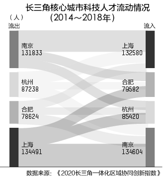 原标题:核心城市带动区域快速崛起,长三角这四城科创人才流动趋平衡