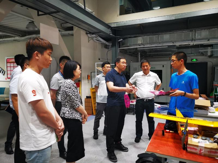 在学生创新中心主任陈江平教授的陪同下,龙安等一行参观了学生创新中心3D打印服务中心、学生社团俱乐部、激光加工中心、机器人俱乐部等地。