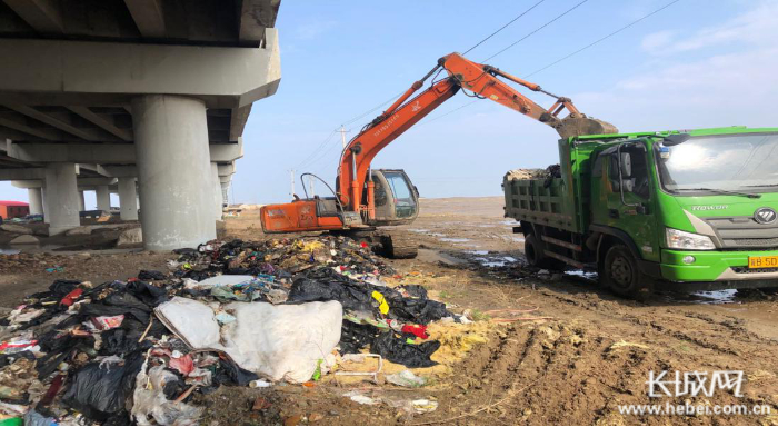 河北省唐山市曹妃甸区小清河桥下垃圾清理。河北省水利厅 供图