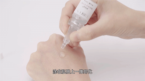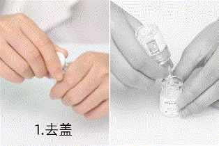 去盖后,将寡肽溶液滴入冻干粉中,盖上软塞口,轻微摇晃瓶身,让其混合均匀后就可以使用啦!