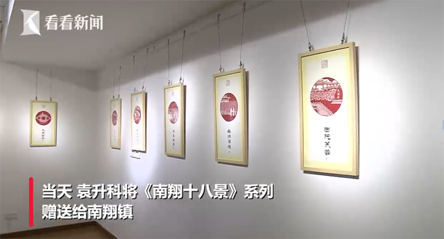6月12日当天,袁升科将《南翔十八景》系列赠送给南翔镇,由南翔镇开展巡展等相关宣传教育活动,同时开展相关文创产品的生产,让“非遗”作品“活”起来。
