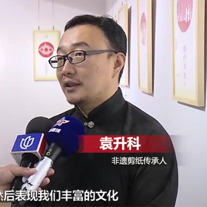 非遗剪纸传承人袁升科:“我就想用我们直观的表现展示我们丰富的文化,然后后期方便做一些相关的延伸和生活用物,因为剪纸它便于产品化,便于后期延伸,便于推广,直观效果比较好。”