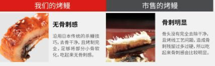 为了保证食品安全的可控性,有自己的调汁厂,而且酱汁全部采用日本秘制配方,符合特级酱汁标准,酱汁占整条烤鳗的配比小于20%,符合行业内标准的酱油比例。