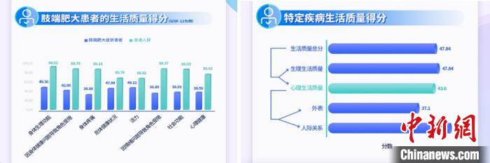 《中国肢端肥大症患者综合社会调查白皮书》近日在京发布。图为肢端肥大症患者生活质量评分。 钟欣 摄