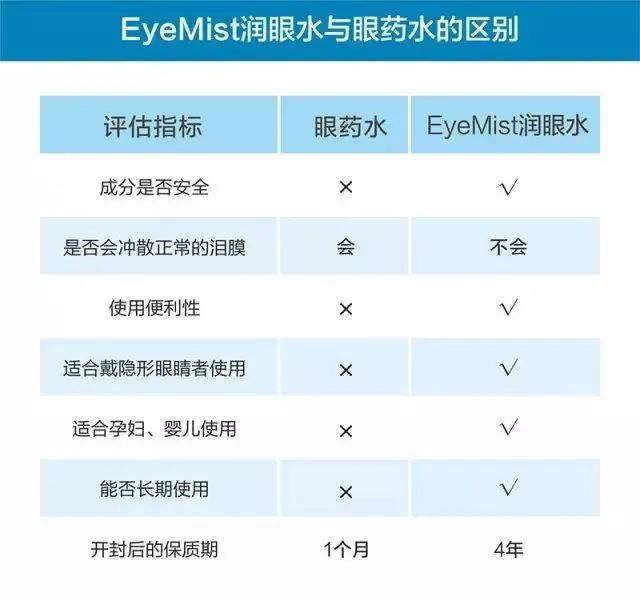 这使得EyeMist润眼喷雾的水质特别接近人类泪液,更安全!可以看下与普通眼药水的区别。
