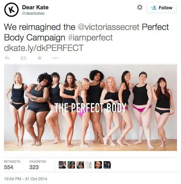 大家逐渐开始变得不满:凭什么要由维密来定义“完美”,凭什么只有大胸细腰大长腿才是完美?