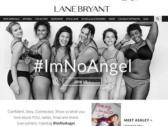 2014年的维密广告让Twitter上#iamperfect的话题爆火。第二年,美国大码女装品牌Lane Bryant就推出主题为#ImNoAngel的活动。而这种多元化的审美,也为性感赋予了更丰富的内涵。