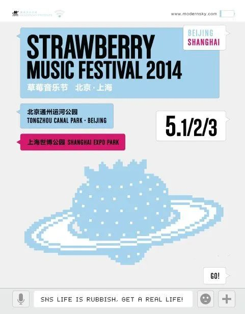 比如说2012年叫“草莓星球大逃亡”,2013年是“重拾庆祝的权利”,2014年是“真实的接触”。2014年是社交媒体尤其微信最爆发的一年,所以低头玩手机常常成为大家的“嘈点”,正是希望大家选择一些时间放下手机,接触真实的世界,所以这一年草莓的主题是:真实的世界。2015年是“缺的,才是好的”,2016年是“虚拟既现实”,2017年是“孤独巡游者”等等。