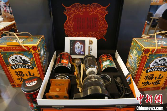 一套含有冲泡器具的咖啡礼盒。 记者王晓斌 摄