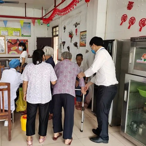 我院老年医学科宋卫兵副主任、何梅香主治医师,康复医学科邓伟民主任、李国辉主治医师,内分泌科王龙清副主任,耳鼻喉头颈外科陈毛毛主治医师发挥各自专长,亲切地与老人交流并仔细询问老人的身体情况,认真听老人们讲述自己的病征,详细了解后提出个性化预防保健方案,并针对老年人抵抗力差易患病等情况,对用药饮食方面给予指导。对一些行动不便、常年卧床的老人,义诊专家走到老人床边检查,并将一些专业的医疗护理知识传授给敬老院的工作人员,以便工作人员能更好地照顾老人。
