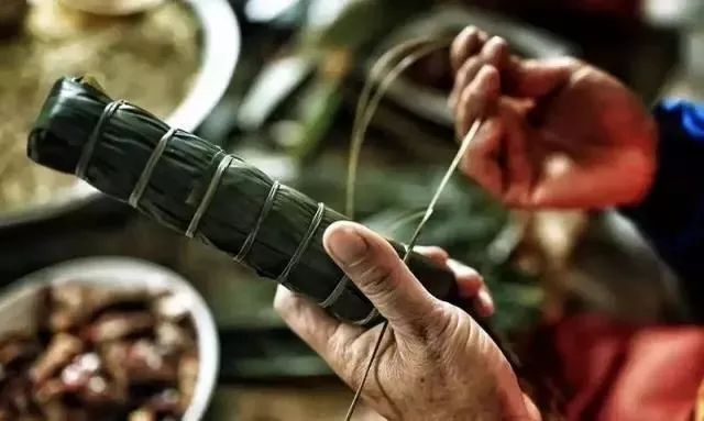 包粽子的时候米既不能太多,会夹生,也不能太少,会不软糯。所以像五芳斋、真真老老的粽子都是要上称,称重检测合格之后方可盖上粽叶,最后用棉线绕上几圈,捆扎紧实才算完成。