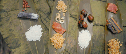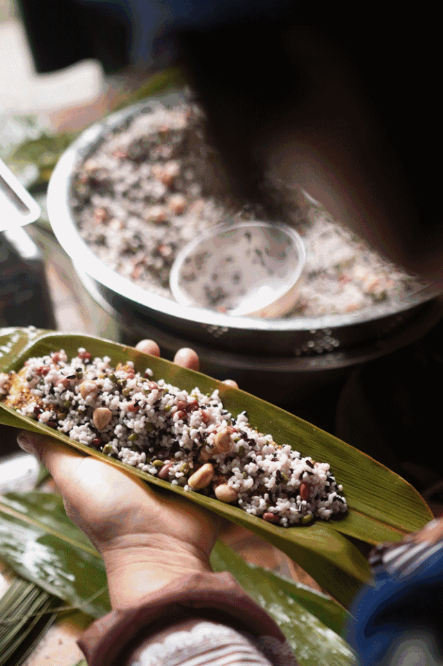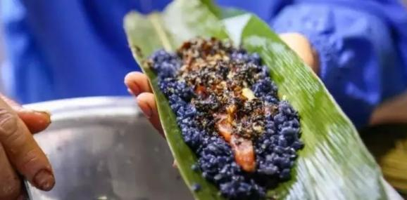 乌米是用南烛叶敲碎浸泡过的糯米,这一味天然的色素不仅有着独特的草木香气,还有特别好的养生效果,清香可口的乌米粽,别有一番滋味。