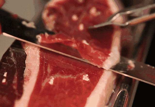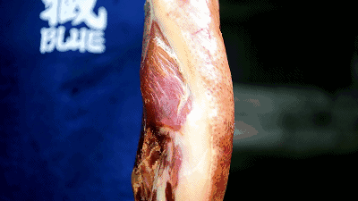 金华的火腿肉,算起来大概有千百年的历史了,经过腌制的猪肉有着特殊的香气和味道。你看那肌红脂白的纹理,好看嘛?好看就是好肉。