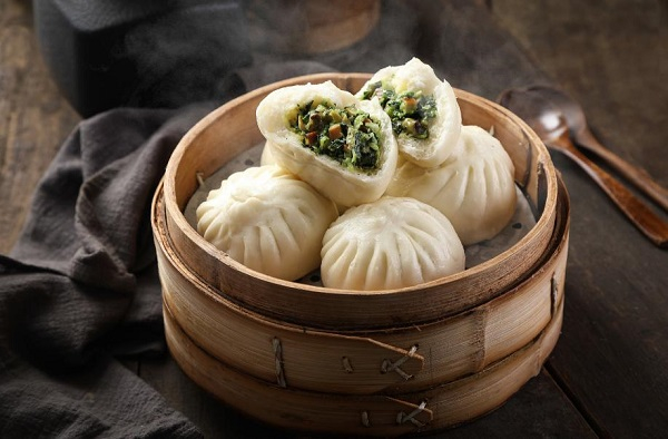 除过桥素面以外,春风松月楼的净素菜包也是一绝:挑选上等的中筋粉和面,蒸出的包子外皮不粘牙,内馅选用上海青、安徽香菇、自制面筋及本帮豆干,剁成馅混合后按比例滴入菜油和麻油,使口感层次分明,香气四溢,回味鲜甜。