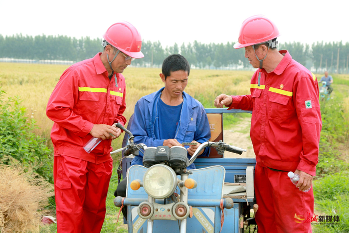 6月15日,在冀东油田高迁天然气管线滦南候花园管段,北田(能源)公司巡线工为跨桥管线进入埋地的管段增设安全反光标,为天然气管道运行增加安全系数。