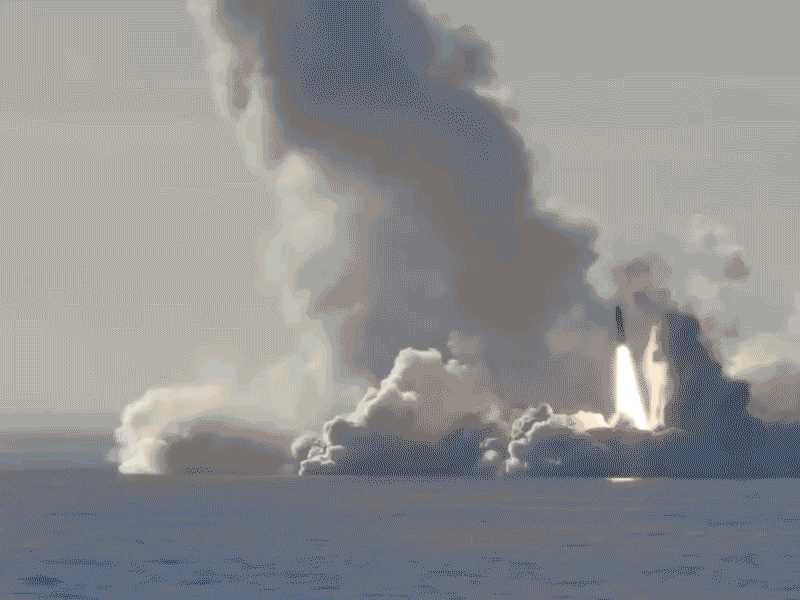 “尤里·多尔戈鲁基”号核潜艇下潜,并发射“圆锤”弹道导弹动态图。