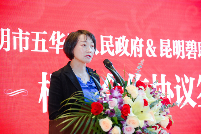 在签约仪式上,五华区人民政府副区长徐静同志表示,为了让广大五华群众享受更为优质的教育资源,我们积极与昆明碧联房地产开发有限公司合作,由碧联地产在莲华街道代建一所小学,进一步推动区域教育结构合理布局,使优质教育资源不断扩充、均衡覆盖。