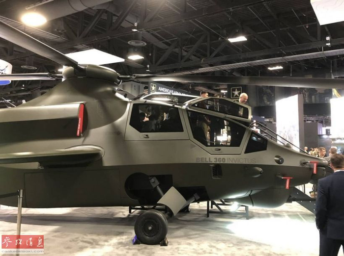 据美国“防务新闻”网站近日报道称,美国贝尔直升机公司将在位于首都华盛顿召开的美陆军协会展览上,展示其最新研发的贝尔306“常胜”(Invictus)隐身攻击侦察直升机全尺寸模型,由于其外形酷似美军已于2004年取消的“科曼奇”隐身武直,有军迷吐槽其为“科曼奇”复活版。图为贝尔306武直模型,与“科曼奇”最大不同就是机身中部增加增加了大型短翼。