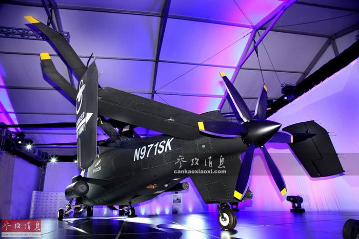 图为S-97原型机的机尾特写,可见尾部推进螺旋桨。
