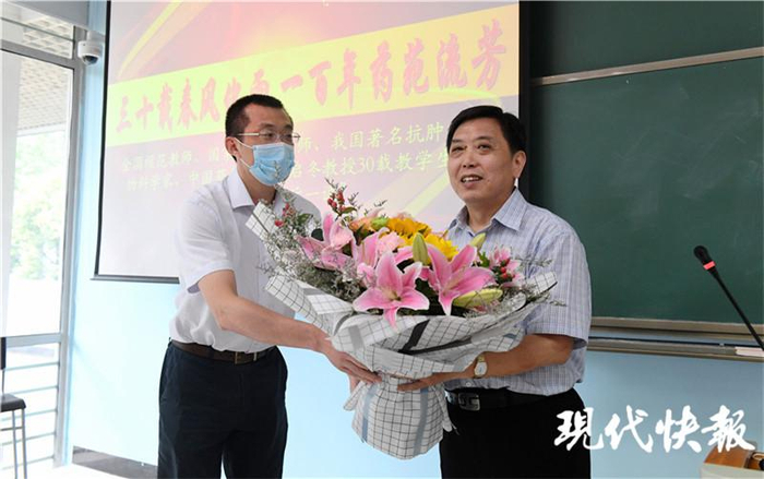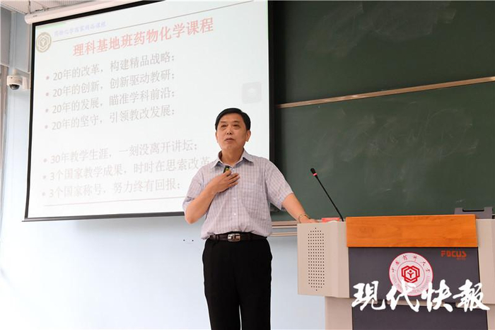 现代快报讯 " 今天,是你们大学阶段最后一节药物化学课,也是我 30 年教学生涯里的最后一堂课。"6 月 18 日,全国模范教师、国家级教学名师、中国知名抗肿瘤药物科学家、中国药科大学尤启冬教授,在他熟悉的 E 楼 202 教室为学生们上了退休前的 " 最后一课 "。已经 64 周岁的尤启冬教授即将退休,也将离开站立了 30 余载的三尺讲台。