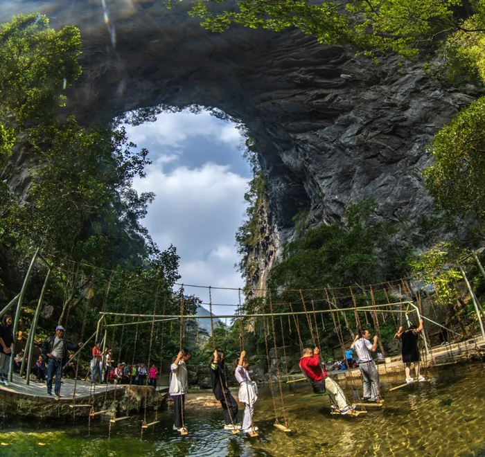 广东“仙门奇峡风景区”位于韶关市乳源瑶族自治县洛阳镇境内,景区占地20多平方公里,属典型的喀斯特岩溶地貌,是南岭山脉核心景区之一,属于半生态山水景区,未经过商业的过度开发,保留了山水之美的同时,也融和了文化科教、运动娱乐、旅游观光、研学旅行、休闲养生、康养度假等多元化元素。