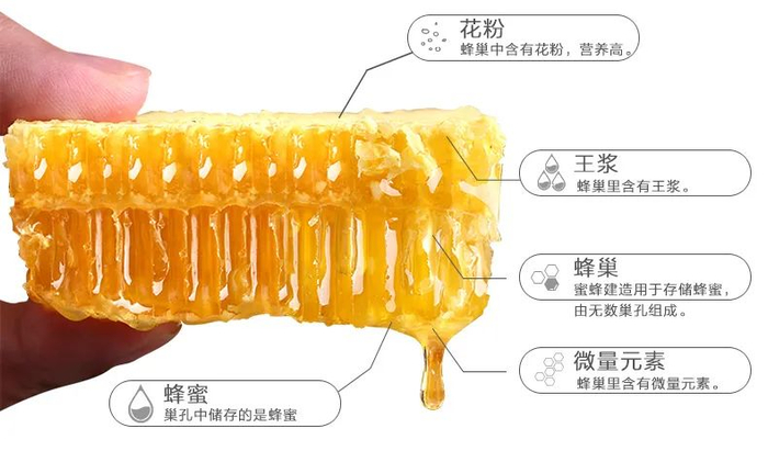 嚼着吃的“巢蜜”融合了蜂蜜、王浆、蜂蜡、花粉为一体。
