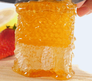 这款天然的巢蜜,能直接切成小块,像口香糖那样嚼着吃,一咬就爆出“玉露琼浆”~