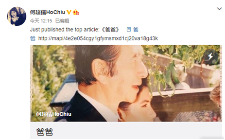 文章最后,何超仪说,“爸爸,感谢你,你让我生命里每一个重要的时刻变得更灿烂。那天你亲自送我出阁,今天让我好好的送别你。我知道你要往很远的地方。在那里,你再不会生病,每天你都可以潇洒的说着你的笑话。而我们,终有一天,会再相聚。。。。。”