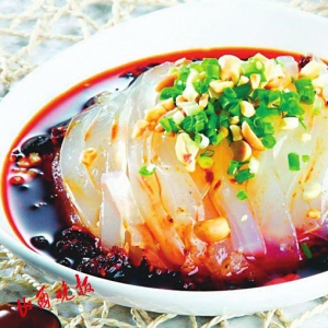 从大同溜达到太原,同样是凉粉,无论是做凉粉的原料还是调制凉粉的佐料都有了变化。以前太原一带的凉粉是用红薯粉做的,所以看上去颜色不像土豆粉透亮,是深褐色,一卷一卷的,吃的时候还要浇上一股子卤汁,同样是酱褐色的,再来一股子褐色的老陈醋,舀一勺子辣子油,凉粉筋道、卤汁滑口、又酸又辣,以前太原桥头街六味斋的凉粉铺子门口总是排着长队,逛柳巷不吃一碗地道的太原凉粉等于白逛。