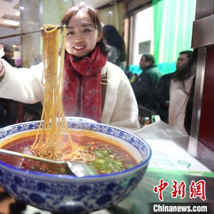 图为兰州一家牛肉面馆推出的“超级牛大碗”牛肉面引来民众追捧品尝。(资料图) 杨艳敏 摄