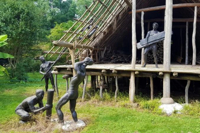在7000多年前,他们就开始设计防潮防水的居室——在造房时打下长长的木桩、铺上厚厚的地板,将房屋分隔为上下两层,上面住人,下面养猪,即便是在雨季也能有效地通风避暑、防潮防虫。这种在河姆渡遗址中出现的“双层小屋”,即是“干栏式建筑”。