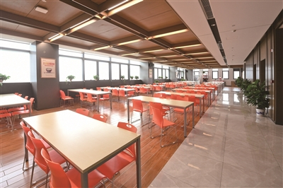 除了智慧办公环境,新总部还着力打造“人性化”工作环境,开辟多个功能区,提升员工工作幸福感。面积超过800平方米的员工食堂,可同时容纳500人就餐。每天有30种菜品及面点小吃供员工选择;设备齐全的健身房让员工工作之余享受健康生活;咖啡吧把员工从紧张的工作中解放出来,给大脑充个电。