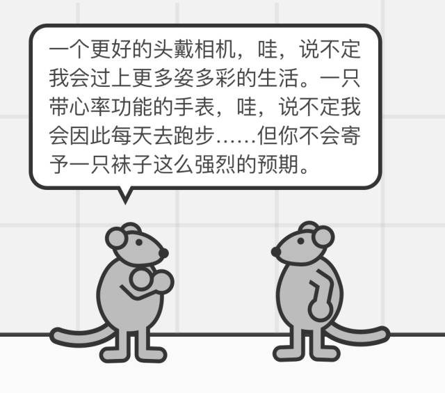 他们会讨论可穿戴电子设备,两只小老鼠称之为“可穿戴幻觉”。