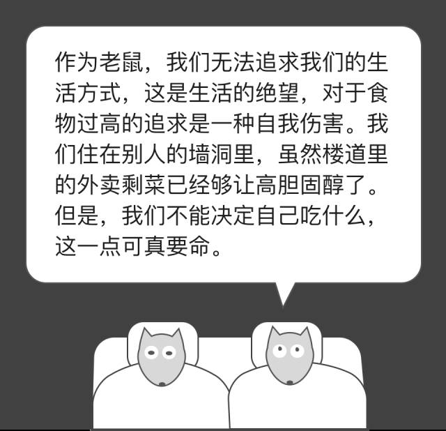 虽然故事画的是老鼠的故事,但这种深夜讨论食物的场景,又像极了深夜孤独的两个自己在对话。