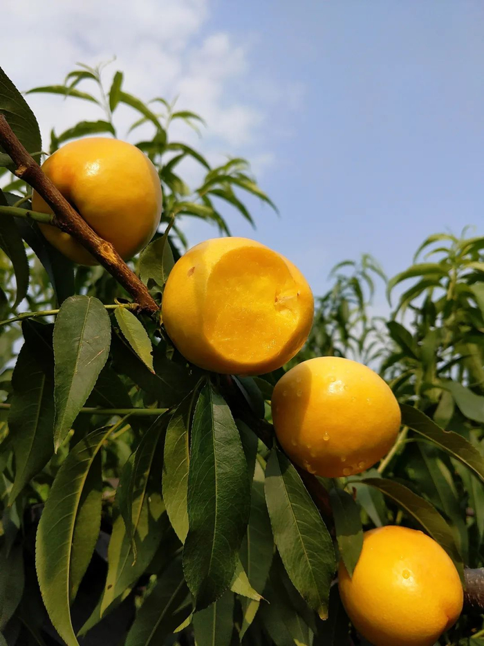 一桃两吃的黄金油桃,刚熟时脆甜;熟透后香软多汁,果肉鲜甜可口,水润清爽而独特。
