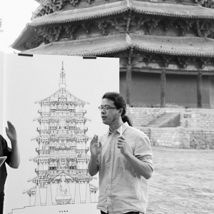 梁思成与同行的莫宗江,用两周时间仔细测量了木塔的主要构件。为了精确测量塔顶的塔刹,他甚至不顾生命危险攀住塔刹不知是否已断裂的千年铁链,“硬是双脚悬空地攀了上去”,即将完成测绘时,突然狂风暴雨,雷电交作,险些丧命。王南老师感叹,梁思成等人当年的测绘速度和绘制水平,即使是今天拥有许多现代设备的测绘团队也望尘莫及,“他们当年之所以这么拼命,既是为了战火中的古建筑,也是为了能在中日学术竞争中为中国人争光”。