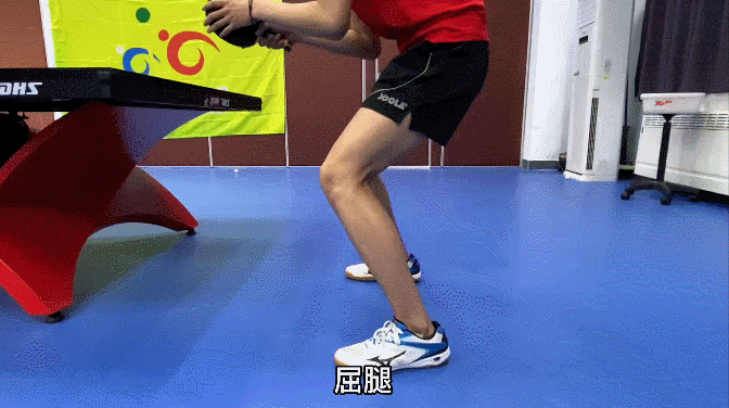 下肢:两脚左右开立,约与肩同宽。左脚稍前于右脚10厘米左右,身体稍向右侧,面向球台。两膝自然弯曲,前脚掌受力,重心置于两脚之间。