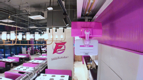 具体来看,传送食物的云轨系统、汉堡机器人、单臂煎炸机器人、迎宾机器人等14款设备,是在此前几家餐厅的基础上实现了快速迭代升级。